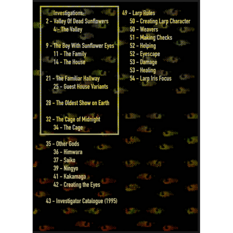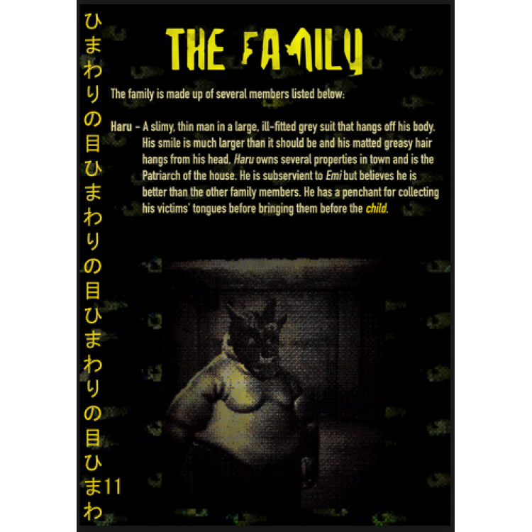The first large-scale expansion to Chorogaiden, adding several pre-made investigations inspired by harvest horror. The nights are getting longer, the days are getting cold. The harvest has begun and things that hide during warmer times have begun to emerge into the half-winter light. The Eyes are afoot again.