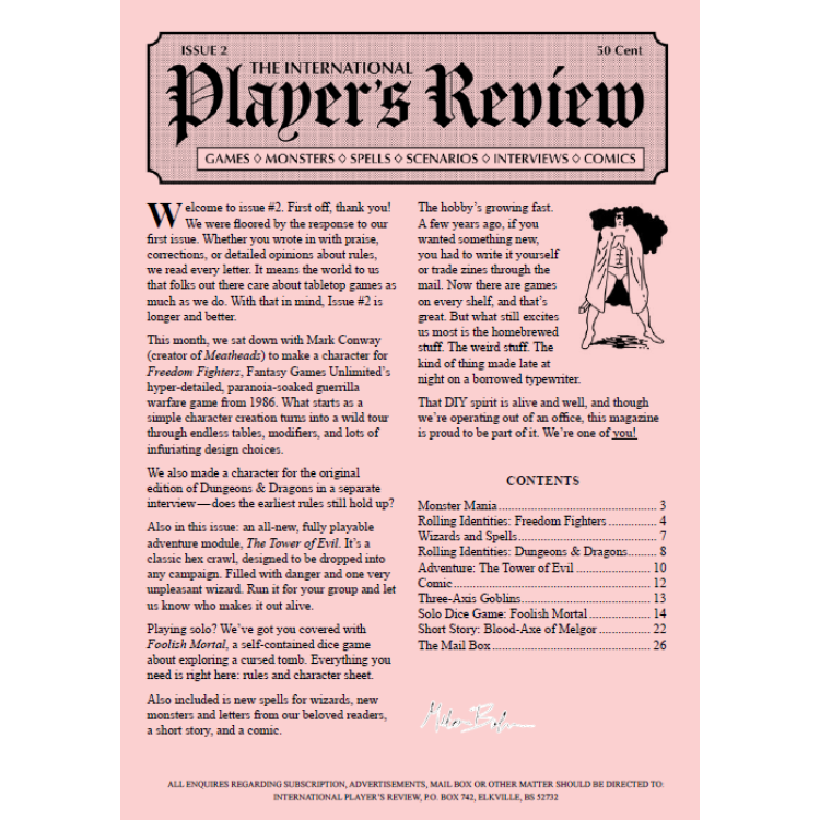 Welcome to issue #2 of The International Player's Review. First off, thank you! We were floored by the response to our first issue. Whether you wrote in with praise, corrections, or detailed opinions about rules, we read every letter. It means the world to us that folks out there care about tabletop games as much as we do. With that in mind, Issue #2 is longer and better.