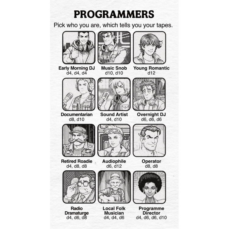You are but one of Trout Radio's programmers—a warrior in the fight for airtime, except the fight has become real and the mixtapes and home recordings you bring in to play are actually transforming into robots to fight each other, as they do. What they do in the fight fills in the track titles, and leads you all to emotional outbursts.