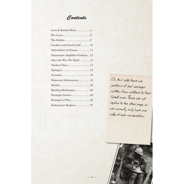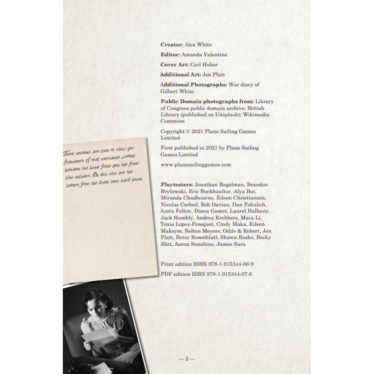 Discover whether love will survive the horrors of the Great War in this two player letter-writing game.